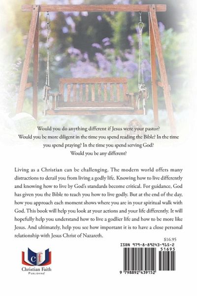 Would you do anything different if Jesus were your pastor? Would you be more diligent in the time you spend reading the Bible? In the time you spend praying? In your willingness to serve God or to just be obedient? How would you act if you spent more one-on-one time with Jesus? Would you be any different? Living as a Christian can be challenging. In this modern world, there are many distractions that can derail you from living a godly life. Knowing how to live differently and knowing how to live by God's standards become critical. God knows the different temptations and challenges that believers may face in day-to-day living. To help, God has given us practical directions and guidance in the Bible on how to live godly. But at the end of the day, how we approach each moment ultimately shows where we are in our spiritual walk with God. These day to day moments show our true character. This book will help you look at your actions and your life differently. It will hopefully help you understand how to be a godly Christian and how to be more like Jesus. And ultimately, how important it is for you to have a close personal relationship with Jesus.