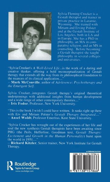 Sylvia Crocker's A Well-Lived Life is a work of a daring and creative thinker, offering a bold reconceptualization of Gestalt therapy that extends all the way from its philosophical foundation to the nuances of its clinical application. In prose that is clear as a bell, Crocker fully exposes the depth and power of Gestalt therapy's field theoretical model, deftly moving from individual to larger systems work and back again, and capturing the full range of human psychological phenomena as she goes. From the acquisition and maintenance of simple behavioral habits, to the construction of personal narrative and myth, Crocker's Gestalt therapy model is equally at home and applicable. Her vision of Gestalt therapy is at the same time startingly unique and comfortably familiar. She is firmly rooted in Gestalt Therapy's 'phenomenological behaviorism, " but at the same time offers us a model for assessing and working with self functions which is remarkably creative, and represents an important new contribution to the field. And throughout the text, interpolated between her provocative theoretical formulations, we encounter Crocker the clinician - moving straight ahead, getting right at the issue, making sense, and all the while, concretely instructive regarding the nature of the work. This is a book that will make a difference, challenging the way we think about the practice, the craft of psychotherapy.