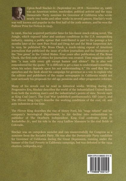 About group of young men on their adventures to find treasure. The book is mainly an adventure story with themes of mischief and friendship, but it also provides a glimpse into the daily routine and life of those in the navy. Biography: Upton Beall Sinclair Jr. (September 20, 1878 - November 25, 1968) was an American writer, muckraker, political activist and the 1934 Democratic Party nominee for Governor of California who wrote nearly 100 books and other works in several genres. Sinclair's work was well known and popular in the first half of the 20th century, and he won the Pulitzer Prize for Fiction in 1943. In 1906, Sinclair acquired particular fame for his classic muck-raking novel, The Jungle, which exposed labor and sanitary conditions in the U.S. meatpacking industry, causing a public uproar that contributed in part to the passage a few months later of the 1906 Pure Food and Drug Act and the Meat Inspection Act. In 1919, he published The Brass Check, a muck-raking exposé of American journalism that publicized the issue of yellow journalism and the limitations of the "free press" in the United States. Four years after publication of The Brass Check, the first code of ethics for journalists was created. Time magazine called him "a man with every gift except humor and silence". He is also well remembered for the quote: "It is difficult to get a man to understand something, when his salary depends upon his not understanding it." He used this line in speeches and the book about his campaign for governor as a way to explain why the editors and publishers of the major newspapers in California would not treat seriously his proposals for old age pensions and other progressive reforms. Many of his novels can be read as historical works. Writing during the Progressive Era, Sinclair describes the world of the industrialized United States from both the working man's and the industrialist's points of view. Novels such as King Coal (1917), The Coal War (published posthumously), Oil! (1927), and The Flivver King (1937) describe the working conditions of the coal, oil, and auto industries at the time. The Flivver King describes the rise of Henry Ford, his "wage reform" and his company's Sociological Department, to his decline into antisemitism as publisher of The Dearborn Independent. King Coal confronts John D. Rockefeller Jr., and his role in the 1914 Ludlow Massacre in the coal fields of Colorado. Sinclair was an outspoken socialist and ran unsuccessfully for Congress as a nominee from the Socialist Party. He was also the Democratic Party candidate for Governor of California during the Great Depression, running under the banner of the End Poverty in California campaign, but was defeated in the 1934 election. (wikipedia.org)