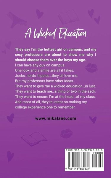 Alluring athletes. Intellectual bookworms. Unconventional free spirits. The dating options are nearly endless. And yet, none of these "boys" hold my interest for longer than it takes to suck down a cold beer at a hot summer frat party. Fortunately, among these campus men, a few figures stand apart. My professors. Their smart- sexy maturity makes the college boys around me pale in comparison. And I quickly learn the intentions of these men are not limited to growing my intellectual knowledge. No, they propose an alternative type of education, one that dives into a realm of desire and sensuality. And hot study sessions. The kind that is not available in any textbook or lecture. They give me a wicked education...in lust. They teach me...a thing or two in the sack. They ensure I'm at the head...of my class. But the most important thing is to remain a straight A student. Even though they're sure to grade me very...hard. This hot, over-the-top romance includes sexy professors with a penchant for pursuing and protecting the college coeds who give them a run for their money. If you love outrageously naughty stories as a way to indulge your not-so-secret bad girl side, this is for you. A Naughty Lesson A Wicked Education A Sinful Classroom