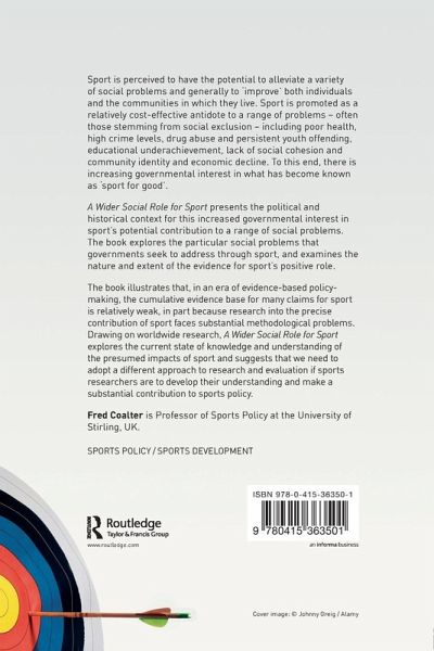 Sport is perceived to have the potential to alleviate a variety of social problems and generally to 'improve' both individuals and the communities in which they live. Sport is promoted as a relatively cost effective antidote to a range of social problems - often those stemming from social exclusion - including poor health, high crime levels, drug abuse and persistent youth offending, educational under-achievement, lack of social cohesion and community identity and economic decline. To this end, there is increasing governmental interest in what has become known as 'sport for good'. A Wider Social Role for Sport presents the political and historical context for this increased government interest in sport's potential contribution to a range of social problems. The book explores the particular social problems that governments seek to address through sport, and examines the nature and extent of the evidence for sport's positive role. It illustrates that, in an era of evidence-based policy-making, the cumulative evidence base for many of these claims is relatively weak, in part because such research is faced with substantial methodological problems in isolating the precise contribution of sport in many contexts. Drawing on worldwide research, A Wider Social Role for Sport explores the current state of knowledge and understanding of the presumed impacts of sport and suggests that we need to adopt a different approach to research and evaluation if sports researchers are to develop their understanding and make a substantial contribution to sports policy..