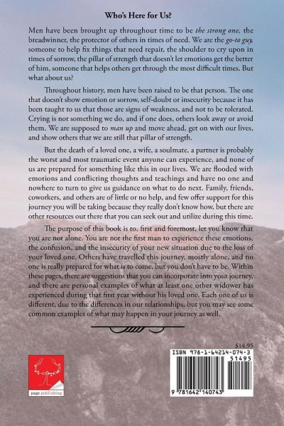 Who’s Here for Us? Men have been brought up throughout time to be the strong one, the breadwinner, the protector of others in times of need. We are the go-to guy, someone to help fix things that need repair, the shoulder to cry upon in times of sorrow, the pillar of strength that doesn’t let emotions get the better of him, someone that helps others get through the most difficult times. But what about us? Throughout history, men have been raised to be that person. The one that doesn’t show emotion or sorrow, self-doubt or insecurity because it has been taught to us that those are signs of weakness, and not to be tolerated. Crying is not something we do, and if one does, others look away or avoid them. We are supposed to man up and move ahead, get on with our lives, and show others that we are still that pillar of strength. But the death of a loved one, a wife, a soulmate, a partner is probably the worst and most traumatic event anyone can experience, and none of us are prepared for something like this in our lives. We are flooded with emotions and conflicting thoughts and teachings and have no one and nowhere to turn to give us guidance on what to do next. Family, friends, coworkers, and others are of little or no help, and few offer support for this journey you will be taking because they really don’t know how, but there are other resources out there that you can seek out and utilize during this time. The purpose of this book is to, first and foremost, let you know that you are not alone. You are not the first man to experience these emotions, the confusion, and the insecurity of your new situation due to the loss of your loved one. Others have travelled this journey, mostly alone, and no one is really prepared for what is to come, but you don’t have to be. Within these pages, there are suggestions that you can incorporate into your journey, and there are personal examples of what at least one other widower has experienced during that first year without his loved one. Each one of us is different, due to the differences in our relationships, but you may see some common examples of what may happen in your journey as well.