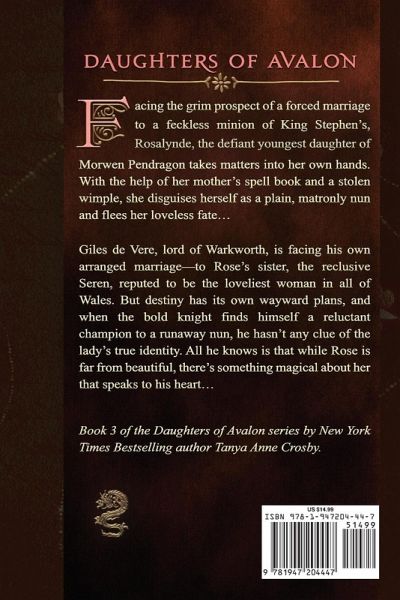 Facing the grim prospect of a forced marriage to a feckless minion of King Stephen's, Rosalynde, the defiant youngest daughter of Morwen Pendragon takes matters into her own hands. With the help of her mother's spell book and a stolen wimple, she disguises herself as a plain, matronly nun and flees her loveless fate... Giles de Vere, lord of Warkworth, is facing his own arranged marriage--to Rose's sister, the reclusive Seren, reputed to be the loveliest woman in all of Wales. But destiny has its own wayward plans, and when the bold knight finds himself a reluctant champion to a runaway nun, he hasn't any clue of the lady's true identity. All he knows is that while Rose is far from beautiful, there's something magical about her that speaks to his heart...