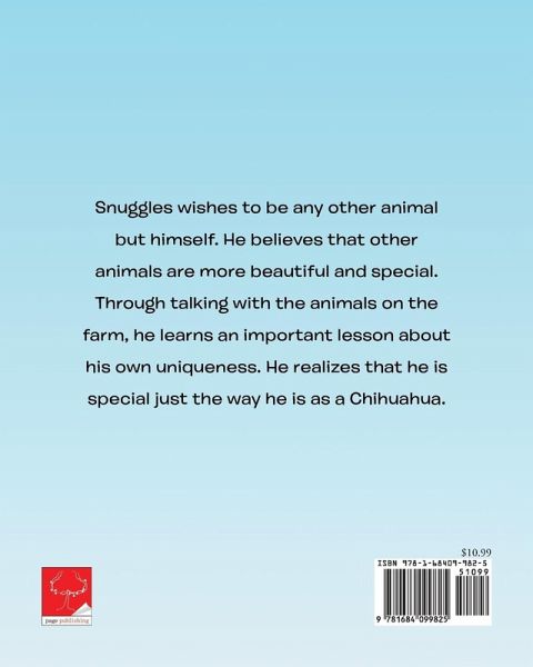 Snuggles wishes to be any other animal but himself. He believes that other animals are more beautiful and special. Through talking with the animals on the farm, he learns an important lesson about his own uniqueness. He realizes that he is special just the way he is as a Chihuahua.