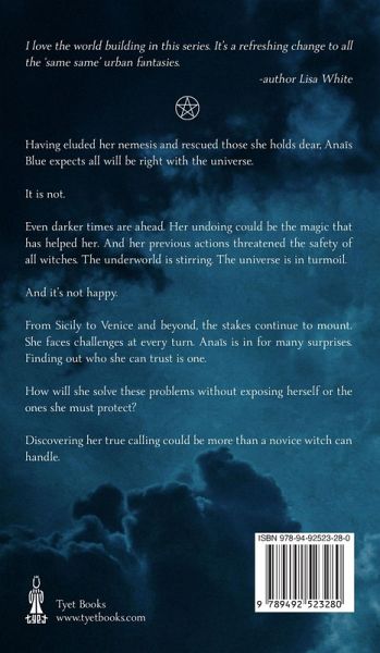 Having eluded her nemesis and rescued those she holds dear... ... Anaïs Blue should expect all will be right the universe. It is not. From Sicily to Venice and beyond, the stakes continue to mount. Anaïs faces challenges at every turn. Even darker times are ahead. Her undoing could be the magic that has helped her. The underworld is stirring. The universe is in turmoil. And it's not happy. Her actions threatened the safety of all witches. Anaïs is in for many surprises. Finding out who she can trust is one. How will she solve these problems without exposing herself or the ones she must protect? Discovering her true calling could be more than a young witch can handle.