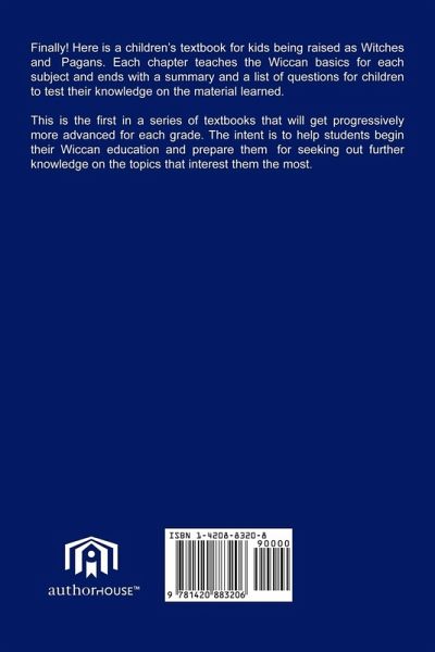 Finally! Here is a children's textbook for kids being raised as Witches and Pagans. Each chapter teaches the Wiccan basics for each subject and ends with a summary and a list of questions for children to test their knowledge on the material learned. .This is the first in a series of textbooks that will get progressively more advanced for each grade. The intent is to help students begin their Wiccan education and prepare them for seeking out further knowledge on the topics that interest them the most.