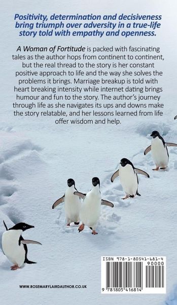 Positivity, determination and decisiveness bring triumph over adversity in a true-life story told with empathy and openness. A Woman of Fortitude is packed with fascinating tales as the author hops from continent to continent, but the real thread to the story is her constant positive approach to life and the way she solves the problems it brings. Marriage breakup is told with heart breaking intensity while internet dating brings humour and fun to the story. The author's journey through life as she navigates its ups and downs make the story relatable, and her lessons learned from life offer wisdom and help.