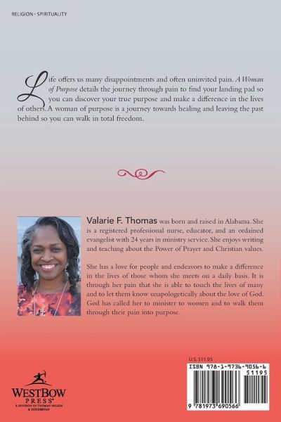 Life offers us many disappointments and often uninvited pain. A Woman of Purpose details the journey through pain to find your landing pad so you can discover your true purpose and make a difference in the lives of others. A woman of purpose is a journey towards healing and leaving the past behind so you can walk in total freedom.