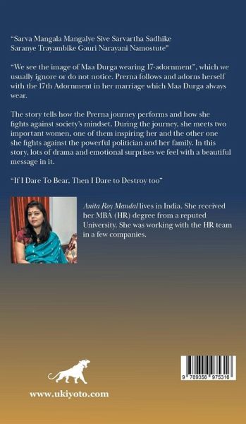 "Sarva Mangala Mangalye Sive Sarvartha Sadhike Saranye Trayambike Gauri Narayani Namostute" "We see the image of Maa Durga wearing 17-adornment", which we usually ignore or do not notice. Prerna follows and adorns herself with the 17th Adornment in her marriage which Maa Durga always wear. The story tells how the Prerna journey performs and how she fights against society's mindset. During the journey, she meets two important women, one of them inspiring her and the other one she fights against the powerful politician and her family. In this story, lots of drama and emotional surprises we feel with a beautiful message in it. "If I Dare To Bear, Then I Dare to Destroy too"