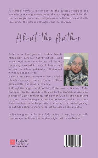 A Woman Worthy is a testimony to the author's struggles and triumphs as a young woman during the most trying time of her life. She invites you to witness her journey of self-discovery and self-love amidst the gifts and struggles that life bestows.