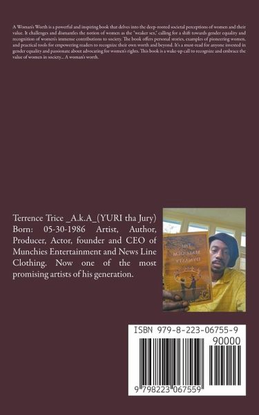 A Women's Worth is a powerful and inspiring book that delves into the deep-rooted societal perceptions of women and their value. It challenges and dismantles the notion of women as the "weaker sex," calling for a shift towards gender equality and recognition of women's immense contributions to society. The book offers personal stories, examples of pioneering women, and practical tools for empowering readers to recognize their own worth and beyond. It's a must-read for anyone invested in gender equality and passionate about advocating for women's rights. This book is a wake-up call to recognize and embrace the value of women in society... A woman's worth.