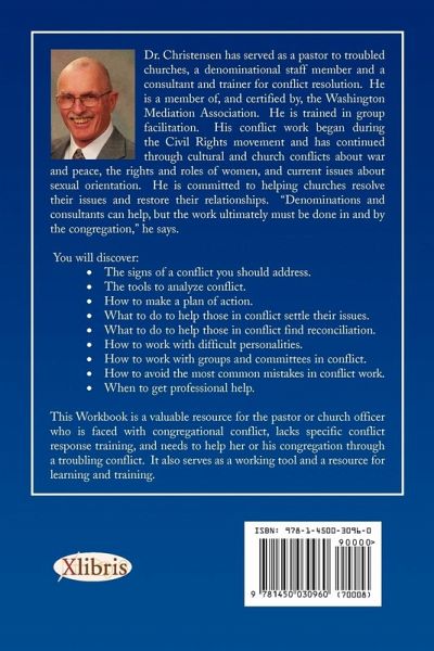 You will discover: ¿ The signs of a conflict you should address. ¿ The tools to analyze conflict. ¿ How to make a plan of action. ¿ What to do to help those in conflict settle their issues. ¿ What to do to help those in conflict find reconciliation. ¿ How to work with difficult personalities. ¿ How to work with groups and committees in conflict. ¿ How to avoid the most common mistakes in conflict work. ¿ When to get professional help. This Workbook is a valuable resource for the pastor or church officer who is faced with congregational conflict, lacks specific conflict response training, and needs to help her or his congregation through a troubling conflict. It also serves as a working tool and a resource for learning and training.