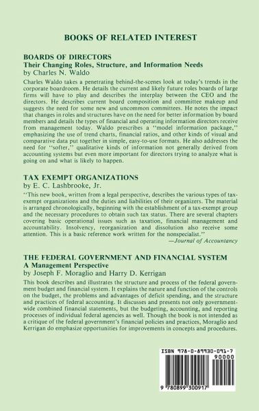 The author delivers on his goal of providing `a quick, easily read, plain-language overview of basic board mission and action.' The book is chock full of practical nuggets on the board's relation to the chief executive, including three key exhibits: Twenty Tips for Effective Interviews, Twenty-One Good Interview Questions, and Checklist for the Termination Decision Process. There are also informative sections on long-range planning, marketing, commercial ventures, applying for grants, taxes and legal matters, and the use of outside consultants. . . . Waldo stands out among writers on governing boards in stating clearly that unpaid, part-time trustee-directors can't be counted on to provide the matrix of behavioral cues we call organizational leadership. Foundation News Geared toward volunteer directors of not-for-profit organizations, this work offers an easy-to-read, non-technical overview of basic board mission and action. The lay director will discover the primary roles, repsonsibilities, and relationships between himself/herself and the not-for-profit organization he or she serves. The book is divided into the three primary areas of responsibility of a director: fiduciary and legal; monitoring and controlling; and planning and directing. Several chapters are devoted to legal matters and responsibilities, tax considerations, and board structure and committees. Written in a reader friendly style, non-business trained or inexperienced directors will find especially helpful the chapters covering the numbers game. Another chapter discusses the essentials of an effective information package that will help directors monitor and better plan for their organization. The bibliography at the end of the work suggests other books and articles that explore in-depth many of the topics discussed.