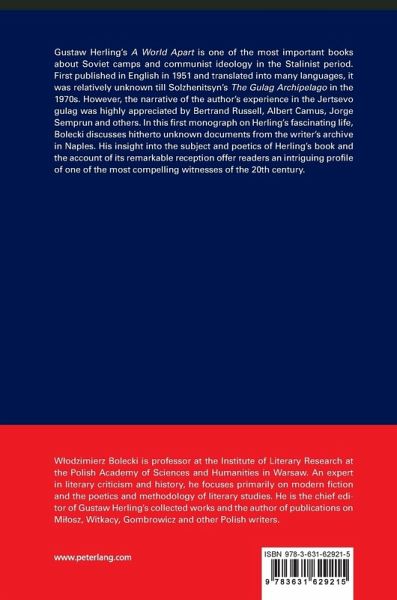 Gustaw Herling's A World Apart is one of the most important books about Soviet camps and communist ideology in the Stalinist period. First published in English in 1951 and translated into many languages, it was relatively unknown till Solzhenitsyn's The Gulag Archipelago in the 1970s. However, the narrative of the author's experience in the Jertsevo gulag was highly appreciated by Bertrand Russell, Albert Camus, Jorge Semprun and others. In this first monograph on Herling's fascinating life, Bolecki discusses hitherto unknown documents from the writer's archive in Naples. His insight into the subject and poetics of Herling's book and the account of its remarkable reception offer readers an intriguing profile of one of the most compelling witnesses of the 20th century.