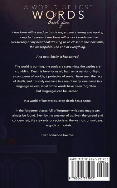 I was born with a shadow inside me, a beast clawing and ripping its way to freedom. I was born with a clock inside me, the tick-ticking of my heartbeat drawing us all closer to the inevitable, the inescapable. The end of everything. And now, finally, it has arrived. The world is burning, the souls are screaming, the castles are crumbling. Death is here for us all, but I am a warrior of light, a conqueror of worlds, a protector of souls. I have seen the face of death, and it is only one face in a sea of many, one name in a language so vast, most of the words have been forgotten ... but languages can be learned. In a world of lost words, even death has a name. In the forgotten places full of forgotten whispers, magic can always be found. Even by the weakest of us. Even the cursed and condemned, the stewards or sectorians, the warriors or maidens, the gods or mortals. Even someone like me. This epic, apocalyptic fantasy is dark, lush and gritty. The heroin has multiple, slow-burn love interests, who all begin as true enemies, so you don't have to choose your favourite anti-hero. This series has some intense and dark themes, and the heroes begin as utterly irredeemable alphaholes, so consider yourselves warned!
