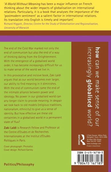 In this provocative and incisive book, Zaki Laidi argues that as our world becomes ever larger, our ability to find meaning in it diminishes. With the end of communism came the end of the intimate alliance between power and ideology. No power in our globalised world can any longer claim to provide meaning. In despair we look back to old models (religious traditions, nationalism, ethnicity) to give us a sense of identity. But in a globalised world in a permanent state of flux, just how effective are these old certainties?