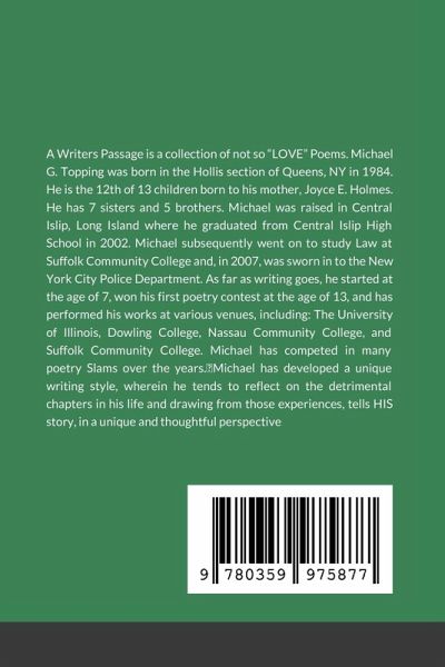 A Writer's Passage is a collection of spoken word poems. Each poem comes from a special place that helped manifest this product into a deep deep read.