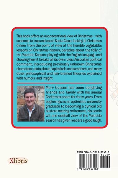 This book talks about a handful of things-with schemes to trap and catch Santa Claus, looking at Christmas dinner from the point of view of the humble vegetable, lessons on Christmas history, parables about the folly of the Yuletide season, playing with the English language and showing how it breaks all its own rules, Australian political comment, introducing previously unknown Christmas characters, rants about capitalistic consumerism, and many other philosophical and hairbrained theories explained with humor and insight.
