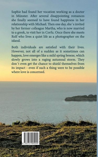 Sophie had found her vocation working as a doctor in Münster. After several disappointing romances she finally seemed to have found happiness in her relationship with Michael. Then one day, she´s invited by her former colleague Martha, who is now married to a greek, to visit her in Korfu. Once there she meets Rolf who lives a quiet life as a photographer on the island.Both individuals are satisfied with their lives. However, not all of a sudden as it sometimes can happen, love emerges like a mild spring breeze, which slowly grows into a raging autumnal storm. They don´t even get the chance to shield themselves from its impact - even if such a thing were to be possible where love is concerned.