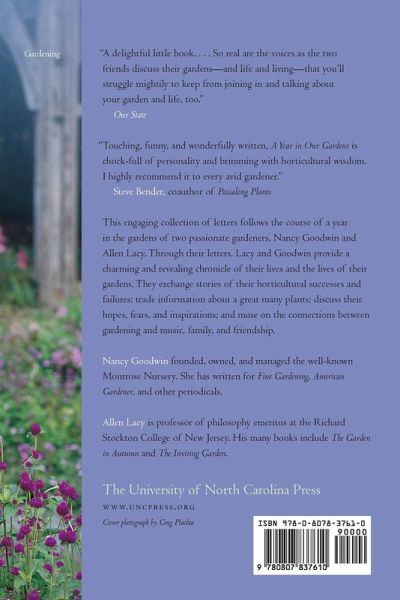 This engaging collection of letters follows the course of a year in the gardens of two passionate gardeners, Nancy Goodwin and Allen Lacy. They share a climate zone (7A), but their gardens differ enormously. Lacy gardens on a 100-by-155-foot plot of former farmland in southern New Jersey, on soil so sandy that he must water frequently if he is to garden at all. Goodwin gardens on rich clay loam at her historic piedmont North Carolina home — which comprises more than sixty acres of woodland, meadow, and established plantings — and she refuses to irrigate, because she believes in growing only those plants that are naturally adapted to the conditions of her land. Through their letters, Lacy and Goodwin provide a charming and revealing chronicle of their lives and the lives of their gardens. They exchange stories of their horticultural successes and failures; trade information about a great many plants; discuss their hopes, fears, and inspirations; and muse on the connections between gardening and music, family, and friendship.