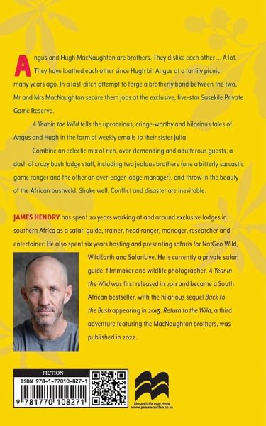 Angus and Hugh MacNaughton are brothers. They dislike each other ... A lot. They have loathed each other since Hugh bit Angus at a family picnic many years ago. In a last-ditch attempt to forge a brotherly bond between the two, Mr and Mrs MacNaughton secure them jobs at the exclusive, five-star Sasekile Private Game Lodge. A Year in the Wild tells the uproarious, cringe-worthy and hilarious tales of Angus and Hugh in the form of weekly emails to their sister Julia. Combine an eclectic mix of rich, over-demanding and adulterous guests, a dash of crazy bush lodge staff, including two jealous brothers (one a bitterly sarcastic game ranger and the other an over-eager lodge manager), and throw in the beauty of the African bushveld. Shake well. Conflict and disaster are inevitable.