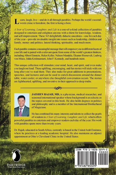 Learn, laugh, live-and do it all through parables. Perhaps the world's second-worst crime is boredom; the first is being a bore. A Year of Learning, Laughter, and Life is a one-of-a-kind collection of parables designed to entertain and enlighten anyone with a thirst for knowledge, wisdom, and self-improvement. These 365 delightfully didactic anecdotes-one for each day of the year-provide invaluable insight into issues such as leadership, children and family, money and politics, lateral thinking, spirituality, and much more. Each parable contains a meaningful message that will empower you in different facets of your life and is paired with a relevant quote from some of the world's greatest thinkers, including Albert Einstein, Helen Keller, Nelson Mandela, Eleanor Roosevelt, Ludwig von Mises, Jiddu Krishnamurti, John F. Kennedy, and hundreds more. This unique collection will stimulate your mind, heart, and spirit, and even make you laugh out loud. These uplifting, encouraging, and fun stories will stick with you long after you've read them. They also make for great additions to presentations, speeches, and lectures and can be used to enrich discussions around the dinner table, water cooler, or anywhere else thoughtful conversation occurs. The stories are lighthearted, uplifting, and inventive in their approach to deep truths.