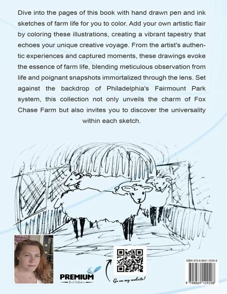 Dive into the pages of this book with hand drawn pen and ink sketches of farm life for you to color. Add your own artistic flair by coloring these illustrations, creating a vibrant tapestry that echoes your unique creative voyage. From the artist's authentic experiences and captured moments, these drawings evoke the essence of farm life, blending meticulous observation from life and poignant snapshots immortalized through the lens. Set against the backdrop of Philadelphia's Fairmount Park system, this collection not only unveils the charm of Fox Chase Farm but also invites you to discover the universality within each sketch.