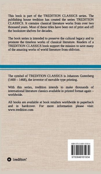 This book (hardcover) is part of the TREDITION CLASSICS. It contains classical literature works from over two thousand years. Most of these titles have been out of print and off the bookstore shelves for decades. The book series is intended to preserve the cultural legacy and to promote the timeless works of classical literature. Readers of a TREDITION CLASSICS book support the mission to save many of the amazing works of world literature from oblivion. With this series, tredition intends to make thousands of international literature classics available in printed format again worldwide.