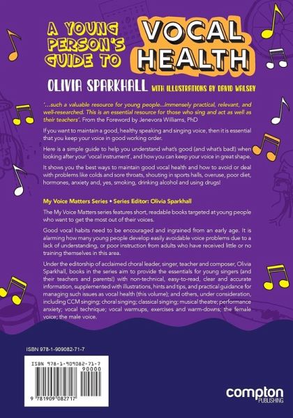 If you want to maintain a good, healthy speaking and singing voice, then it is essential that you keep your voice box in good working order. Here is a simple guide to help you understand what's good (and what's bad!) when looking after your 'vocal instrument', and how you can keep your voice in great shape. It shows you the best ways to maintain good vocal health and how to avoid or deal with problems like colds and sore throats, shouting in sports halls, overuse, poor diet, hormones, anxiety and, yes, smoking, drinking alcohol and using drugs! Ideal for singing teachers and choir leaders in engendering good vocal habits in young people.