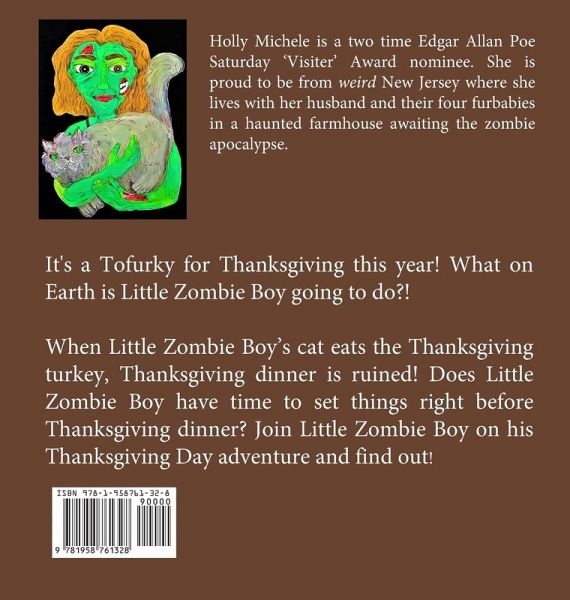 It's a Tofurky for Thanksgiving this year! What on Earth is Little Zombie Boy going to do?! When Little Zombie Boy's cat eats the Thanksgiving turkey, Thanksgiving dinner is ruined! Does Little Zombie Boy have time to set things right before Thanksgiving dinner? Join Little Zombie Boy on his Thanksgiving Day adventure and find out!
