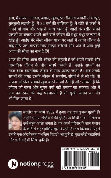 Mannat is a 22-year-old living with her parents and three brothers in a small town called Rajpur. I am excited to get married and step into a dreamy world of love, affection and fondness. I am a charming, excellent chef and a house perfectionist, which makes me a perfect wife and a bahu. I cannot wait to prove it all to my would-be family. Read Aaj Ki Sita and find out how Mannat fits into the new world. Does the struggle mar or make her spirit of life?
