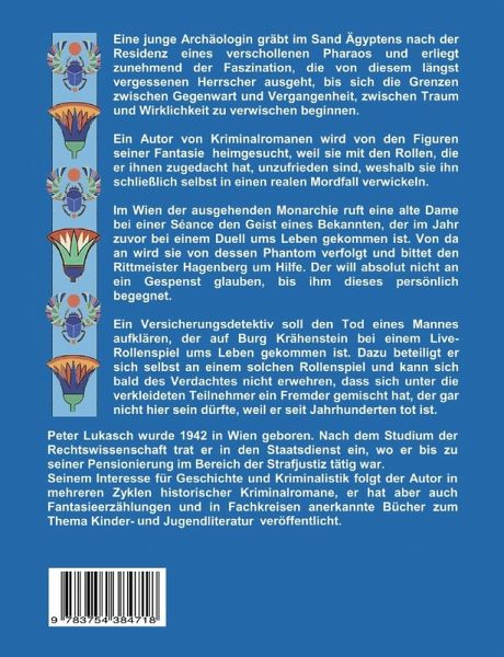 Eine junge Archäologin gräbt im Sand Ägyptens nach der Residenz eines verschollenen Pharaos und erliegt zunehmend der Faszination, die von diesem längst vergessenen Herrscher ausgeht, bis sich die Grenzen zwischen Gegenwart und Vergangenheit, zwischen Traum und Wirklichkeit zu verwischen beginnen.Ein Autor von Kriminalromanen wird von den Figuren seiner Fantasie heimgesucht, weil sie mit den Rollen, die er ihnen zugedacht hat, unzufrieden sind, weshalb sie ihn schließlich selbst in einen realen Mordfall verwickeln.Im Wien der ausgehenden Monarchie ruft eine alte Dame bei einer Séance den Geist eines Bekannten, der im Jahr zuvor bei einem Duell ums Leben gekommen ist. Von da an wird sie von dessen Phantom verfolgt und bittet den Rittmeister Hagenberg um Hilfe. Der will absolut nicht an ein Gespenst glauben, bis ihm dieses persönlich begegnet.Ein Versicherungsdetektiv soll den Tod eines Mannes aufklären, der auf Burg Krähenstein bei einem Live-Rollenspiel ums Leben gekommen ist. Dazu beteiligt er sich selbst an einem solchen Rollenspiel und kann sich bald des Verdachtes nicht erwehren, dass sich unter die verkleideten Teilnehmer ein Fremder gemischt hat, der gar nicht hier sein dürfte, weil er seit Jahrhunderten tot ist.