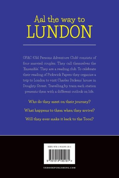 Eight Geordie pensioners unleashed in the Big Smoke... what could possibly go wrong? OPAC (Old Persons Adventure Club) consists of four married couples. They call themselves the 'Ensemble'. They are a reading club. To celebrate their reading of Pickwick Papers they organise a trip to London to visit Charles Dickens' house in Doughty Street. Travelling by train each station presents then with a different outlook on life. In their younger days they did sterling work in science and technology. One of them is a knight of the realm. To those familiar with their different areas of expertise they are minor celebrities. Who do they meet on their journey? What happens to them when they arrive? Will they ever make it back to the Toon? This book will tickle your ribs and break your heart strings.