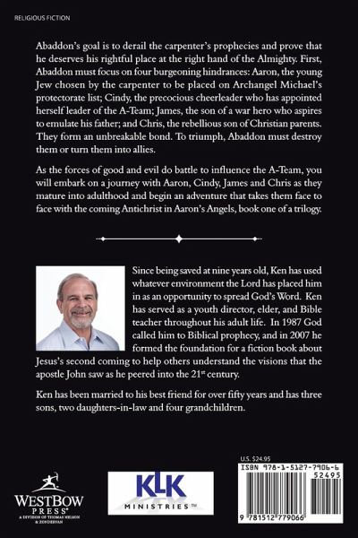 Abaddon's goal is to derail the carpenter's prophecies and prove that he deserves his rightful place at the right hand of the Almighty. First, Abaddon must focus on four burgeoning hindrances: Aaron, the young Jew chosen by the carpenter to be placed on Archangel Michael's protectorate list; Cindy, the precocious cheerleader who has appointed herself leader of the A-Team; James, the son of a war hero who aspires to emulate his father; and Chris, the rebellious son of Christian parents. They form an unbreakable bond. To triumph, Abaddon must destroy them or turn them into allies. As the forces of good and evil do battle to influence the A-Team, you will embark on a journey with Aaron, Cindy, James and Chris as they mature into adulthood and begin an adventure that takes them face to face with the coming Antichrist in Aaron's Angels, book one of a trilogy.