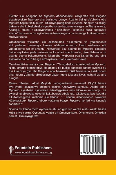 Ekitabo eki, Abagabe ba Mpororo Abaabandize, nikigamba aha Bagabe abaategyekire Mpororo aha busingye bwayo. Abantu baingi ab'obwire obu Mpororo bagihurira buhurira. Tibiri byingi ebigihandiikirweho. Nangwa na baingi bakoma aha kuteekateeka ngu Abahororo baba orujwangye rw'Abanyankore, Abakiga, obundi n'Abanyarwanda n'Ekifumbira. Babaasa kuba batagwire ahabw'okuba omu nsi egi tuteraine twajwangana na munonga turikuraba omu kushwererana. Omuhandiiki w'ekitabo eki akashutama n'ekaraamu ye yaatondoora ebi yaabaire naamanya hamwe n'ebiyacondoorize kandi n'ebimwe ebi yaarabiremu we nk'omuntu. Natworeka oku abantu ba Mpororo baabaire baine enyikiriza yaabo erikukomooka ahari ishenkuru-bo, niwe Nshamba ou abantu boona bakomookaho. Nitureeba twebuuza oba Nshamba ogu aine akakwate na ba Ruhanga ab'enyikiriza zitari zimwe-na-zimwe. Omuhandiiki naturabya omu Bagabe n'Omugabekazi abaategyekire Mpororo. N'obu araabe atarikutebya ebi abantu ba buriijo baabaire bakora kwonka ku turi kuranzya gye ebi Abagabe aba baakozire nikituheerezaho ekishushani aha ntuura y'abantu ob'obusigye obwo; reero tubaasa kweshushaniriza ahu turugire. Reero mbwenu, Aloni Muyinda tumugambe-ki tureke-ki? Eky'okubanza kya byona, akazaarwa Mpororo ekiriho. Akakwatwa buhuuku. Akaba ariho Mpororo eyaabaire eyeteraine erikutegyekwa omu bicweka mushanju; na bwanyima ebicweka ebyo birikukubuurwa Abajungu. Okutonzya kwe kwonka nikutwetengyesa kushoma eki kitabo: "... abantu nibahindurwa okwetwa Abanyankore. Mpororo ebure n'abantu baayo. Mpororo yo teri mu Uganda kurindwa?" Shoma eki kitabo reero oyebuuze ahu orugire iwe wenka n'ahu waakubaasa kuba oriyo nooza! Oyebuuze yaaba ori Omunyankore, Omuhororo, Omukiga nari-shi Omunyaigara!!
