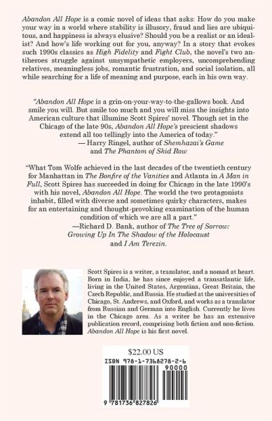 Abandon All Hope is a comic novel of ideas that asks: How do you make your way in a world where stability is illusory, fraud and lies are ubiquitous, and happiness is always elusive? Should you be a realist or an idealist? And how's life working out for you, anyway? In a story that evokes such 1990s classics as High Fidelity and Fight Club, the novel's two antiheroes struggle against unsympathetic employers, uncomprehending relatives, meaningless jobs, romantic frustration, and social isolation, all while searching for a life of meaning and purpose, each in his own way