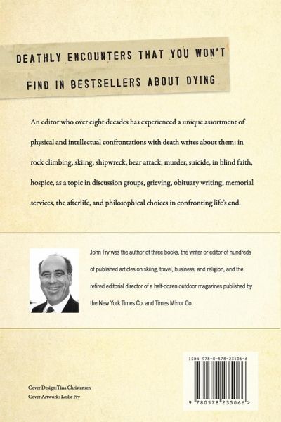 An entertaining and philosophical book about death and dying . . . An editor who over eight decades has experienced a unique assortment of physical and intellectual confrontations with death writes about them: in rock climbing, skiing, shipwreck, bear attack, murder, suicide, in blind faith, hospice, as a topic in discussion groups, grieving, obituary writing, memorial services, the afterlife, and choices in confronting life's end. About the author: John Fry wrote the award-winning book, The Story of Modern Skiing. Among his other books is A Mind at Sea: Henry Fry and the Glorious Era of Quebec's Sailing Ships. He also wrote hundreds of published articles on skiing, travel, business, and religion. He was a dedicated environmentalist and the editorial director of a half-dozen outdoor magazines published by the New York Times Co. and Times Mirror Co.