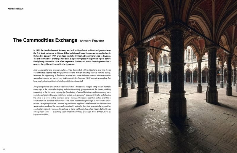 From the old blast furnaces in the Liège Province, to an abandoned textile factory in West Flanders, the forgotten neo-Gothic marvels of Europe's first stock exchange in Antwerp, an MiG stranded in the middle of a forest, and thermal baths that have been abandoned despite their UNESCO World Heritage status... The buildings that Francis Meslet has immortalised hang between life and death and radiate a silence that speaks volumes. Through these photographs, which seem to tell us an invaluable secret, he immortalises the splendour and decadence of a nation blessed with one of the richest heritages in Europe. By emphasising the fragile beauty of this heritage, the photographer invites us to think about how we can protect it so that it continues to resonate with future generations.