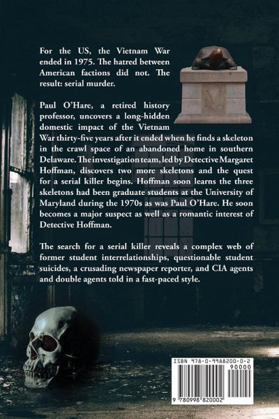 Abandoned Homes: Vietnam Revenge Murders is a suspenseful serial killer crime novel.U.S. involvement in the Vietnam War ended in 1975 when the U.S. abandoned its embassy in Saigon. However, the hate developed during the war years, especially at major universities continued. Proponents of the war, fierce opponents of communism, acted during the war years to remove potential traitors from our society. Those against the war continued their opposition, begun in the 1960s, culminating in the riots and student killings at major universities, including Kent, Maryland and Wisconsin. Paul O’Hare, a retired history professor, uncovers a long-hidden domestic impact of the Vietnam War thirty-five years after the war ended when he finds a skeleton in the crawl space of an abandoned home in southern Delaware. The Delaware State Police investigation team, headed by Detective Margaret Hoffman, discovers two more skeletons and the quest for a serial killer begins. Hoffman soon determines the three skeletons had been graduate students at the University of Maryland during the 1970s as had Paul O’Hare. He soon becomes a major suspect. Eventually the State Police clear him and he begins a romantic relationship with Detective Hoffman that must resolve conflicts between his anti-war sentiments and her experience as a Marine veteran. The investigation uncovers Vietnam War controversies between pro- and anti-war graduate students at the University of Maryland in the early 1970s. Several anti-war students reportedly committed suicide, but their friends believe the CIA assassinated them. Thirty-five years later, after O’Hare’s initial finding, additional skeletons and missing Maryland students are discovered by Detective Hoffman’s team. The investigation unravels the long simmering hatreds between the pro- and anti-war factions, culminating in additional killings and attempted murders in 2008. Identifying the missing Maryland students, Ralph Cohen and Anne Carlsson acquaintances of Paul O’Hare, who had changed their identities to avoid the fate of their friends, and bringing them into protective police custody becomes the key to identifying the serial killers. The search for a serial killer reveals a complex web of interrelated former students, questionable suicides, a crusading newspaper reporter, and CIA agents and double agents, in this fast-paced suspense novel. The Maryland Writers Association awarded Abandoned Homes: Vietnam Revenge Murders first place in the mystery/thriller category in their 2018 novel contest.