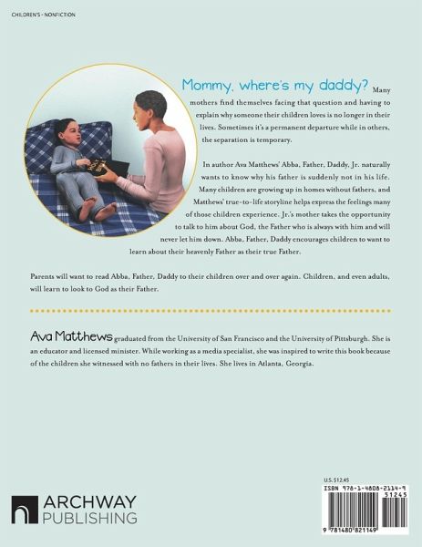 "Mommy, where's my daddy?" Many mothers find themselves facing that question and having to explain why someone their children loves is no longer in their lives. Sometimes it's a permanent departure while in others, the separation is temporary. In author Ava Matthews' Abba, Father, Daddy, Jr. naturally wants to know why his father is suddenly not in his life. Many children are growing up in homes without fathers, and Matthews' true-to-life storyline helps express the feelings many of those children experience. Jr.'s mother takes the opportunity to talk to him about God, the Father who is always with him and will never let him down. Abba, Father, Daddy encourages children to want to learn about their heavenly Father as their true Father. Parents will want to read Abba, Father, Daddy to their children over and over again. Children, and even adults, will learn to look to God as their Father.