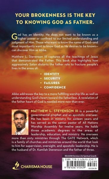 Your brokenness is the key to knowing God as Father. God has an identity. He does not want to be known as a higher power or confined to our limited understanding and judgment of Him. Those who want to know the name of God--and most importantly want to know God as He desires to be known--can discover him as Abba. Matthew L. Stevenson III captures all the teachings of Jesus that demonstrated the Father. This book also highlights how aggressively Satan distorts the father role to fracture people's lives in the areas of: - Identity - Security - Failures - Confidence Abba addresses the key to a more fulfilling worship life as well as understanding God's heart toward the fatherless. A revelation of the father heart of God is needed more now than ever.