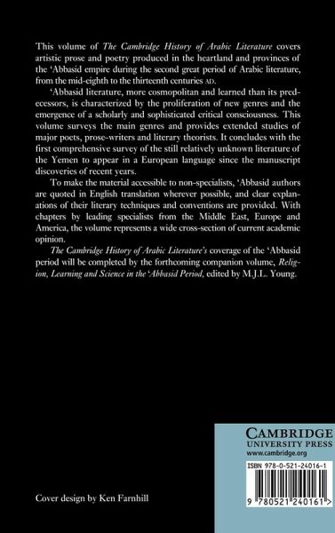 This volume covers artistic prose and poetry produced in the 'Abbasid empire from the mid-eighth to the thirteenth centuries AD.