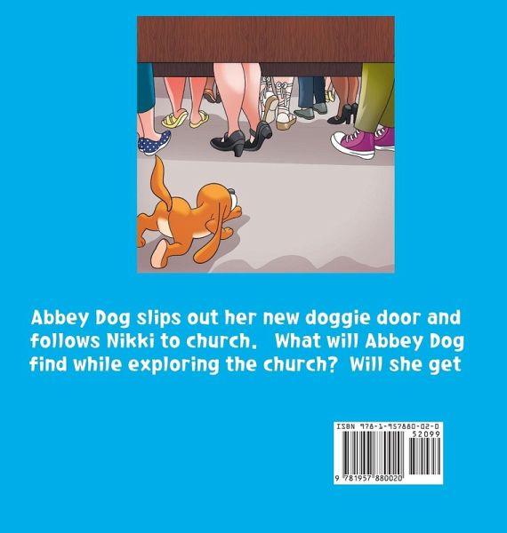 Nikki and Abbey Dog have had many adventures together, and today is no different. Nikki teaches Abbey Dog how to use the new doggie door. After many attempts, Abbey Dog pushes through and lands outside. But unfortunately, practice will have to wait because Nikki needs to leave with her family for church. Oh no! Nikki forgets to lock the doggie door. Abbey Dog slips through the doggie door and slyly follows the family to church. Finally, she sneaks in the church door and begins a fantastic adventure. What trouble will Abbey Dog experience? Will she find Nikki in the sea of people? Will the church crowd be shocked to find a dog in church?
