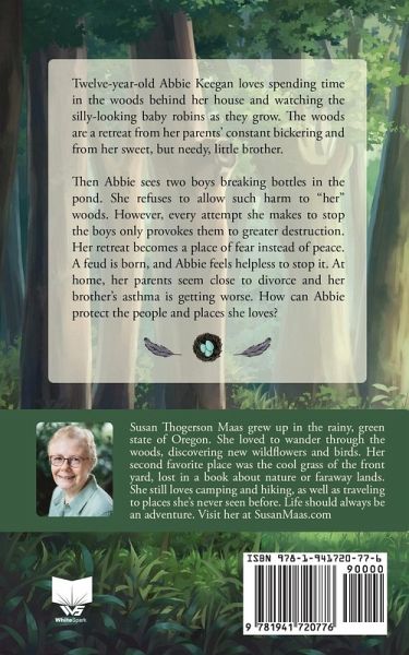 Twelve-year-old Abbie Keegan loves spending time in the woods behind her house and watching the silly-looking baby robins as they grow. The woods are a retreat from her parents' constant bickering and from her sweet, but needy, little brother. Then Abbie sees two boys breaking bottles in the pond. She refuses to allow such harm to "her" woods. However, every attempt she makes to stop the boys only provokes them to greater destruction. Her retreat becomes a place of fear instead of peace. A feud is born, and Abbie feels helpless to stop it. At home, her parents seem close to divorce and her brother's asthma is getting worse. How can Abbie protect the people and places she loves?