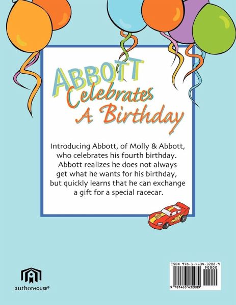 Introducing Abbott, of Molly & Abbott, who celebrates his fourth birthday. Abbott realizes he may not always get what he wants for his birthday. In fact, Abbott receives a duplicate gift and exchanges the gift for a much-wanted racecar set.