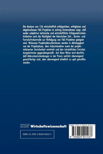 Der Abbruch eines Forschungs-und Entwicklungsprojektes vor der Erfiillung der damit verbundenen Aufgabe stellt eine besonders schwierige Entscheidung dar. Ein vorzeitiger Abbruch setzt sich dem Vorwurf aus, daB mit wenig mehr· Geduld das gesamte Ziel hatte erreicht werden konnen. Ein verspateter Abbruch provoziert das Urteil, daB knappe Mittel verschleudert wurden, die bei anderen Aufgaben eines Unternehmens besser eingesetzt worden ·waren. Die Aufgabe ist auch deshalb kompliziert, weil sowohl technische a1s auch okonomische Kriterien in die Entscheidung einflie6en. Es ist deshalb verstandlich, wenn Wissenschaft und Praxis tiber die formal-theoretischen Modelle der Stop-Theorie hinaus nach inhaltlkhen Kriterien such en, die in einem moglichst When Zeitpunkt als Signal fiir die Projekt fortsetzung oder den Projektabbruch verwendet werden konnen. Solche empirisch orientierten Arbeiten sind bisher vorzugsweise in den USA durchgefiihrt worden, haben dabei aber noch nicht ausreichend auf den Wechsel moglicher Abbruchkriterien in verschiedenen Projektphasen Rticksicht genommen und die Entwi~klung der Projektunsieherheit nieht explizit verfolgt. In der vorliegenden Untersuchung werden Projektdaten deutscher U nternehmen aus vier Branchen, der Chemie-Industrie, der Elektrotechnischen Industrie, des Maschinenbaus und des Fahrzeugbaus, untersucht. Lange vergleicht Erfolge und Mi6erfolge in der Entwieklungsarbeit im Hinblick auf die Kriterien, die zwischen beiden Ausgangen der Projektarbeit diskriminieren konnen. Er stellt denen den Vergleich zwischen abgebrochenen und erfolgreich abgeschlossenen Projekten sowie abgebrochenen und erfolglos abgeschlossenen Projekten gegentiber. Auf diese Weise kann eine Vielzahl interessanter und praktisch bedeutsamer Ergebnisse ermittelt werden. Erfolgreiche Projekte und Projektmi6erfolge zeigen wahrend der Projektbearbeitung einen voneinander abweichenden typischen Verlauf der mil den Projekten verbundenen U nsicherheit.