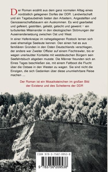 Der Roman erzählt aus dem ganz normalen Alltag eines nordöstlich gelegenen Dorfes der DDR. Landwirtschaft und ein Tagebaubetrieb bieten den Arbeitern, Angestellten und Genossenschaftsbauern ein Auskommen. Es wird gearbeitet und gefeiert, gestritten, geliebt, gelacht und geweint - ein turbulentes Miteinander in den ideologischen Strömungen der Auseinandersetzung zwischen Ost und West.In einer Hafenkneipe im nahegelegenen Rostock lernen sich zwei ehemalige Seeleute kennen: Den einen hat es aus familiären Gründen in den Osten Deutschlands verschlagen, der andere war Zweiter Offizier auf einem Fischtrawler, bis er wegen unerlaubter Kontakte mit westdeutschen Bürgern sein Seefahrtsbuch abgeben musste. Die Männer freunden sich an. Eines Tages beschließen sie, mit einem Faltboot die Flucht über die Ostsee in den Westen zu wagen. Sie sind nicht die Einzigen, die sich Gedanken über diese unumkehrbare Reise machen ...Der Roman ist ein Mosaiksteinchen im großen Bild der Existenz und des Scheiterns der DDR