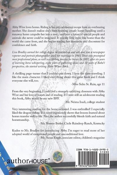 Abby Wize loves horses. Riding is her only adolescent escape from an overbearing mother. She doesn't realize she's been learning unsafe horse-handling until a runaway horse catapults her into a tree...and into a future of special people and animals she never could've imagined. It quickly feels more like home than the world she came from, and she begins trading her insecurity and discontent for confidence and faith.