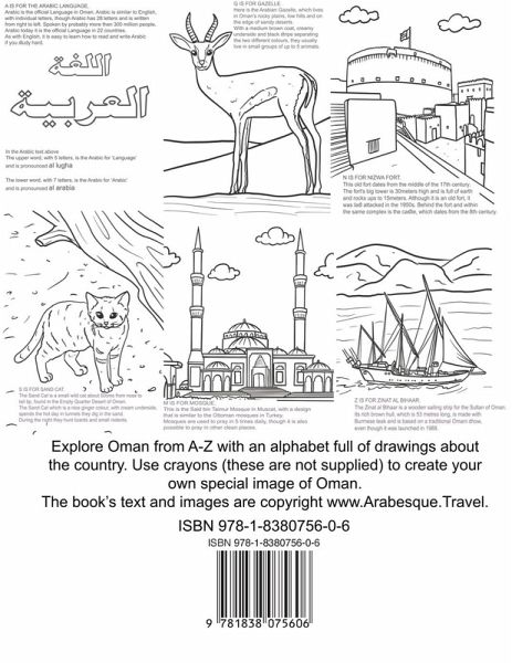 Explore Oman from A-Z with an alphabet full of drawings about the country. Use crayons (these are not supplied) to create your own special image of the Oman. With line drawings to colour in and basic information about the subject, this is a great way to have fun and learn about Oman.