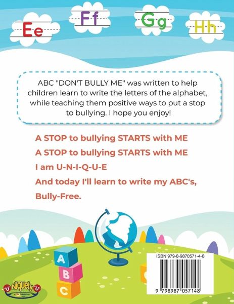 ABC Don't Bully Me was written to help children learn to write the letters of the alphabet, while teaching them positive ways to put a stop to bullying. I hope you enjoy!